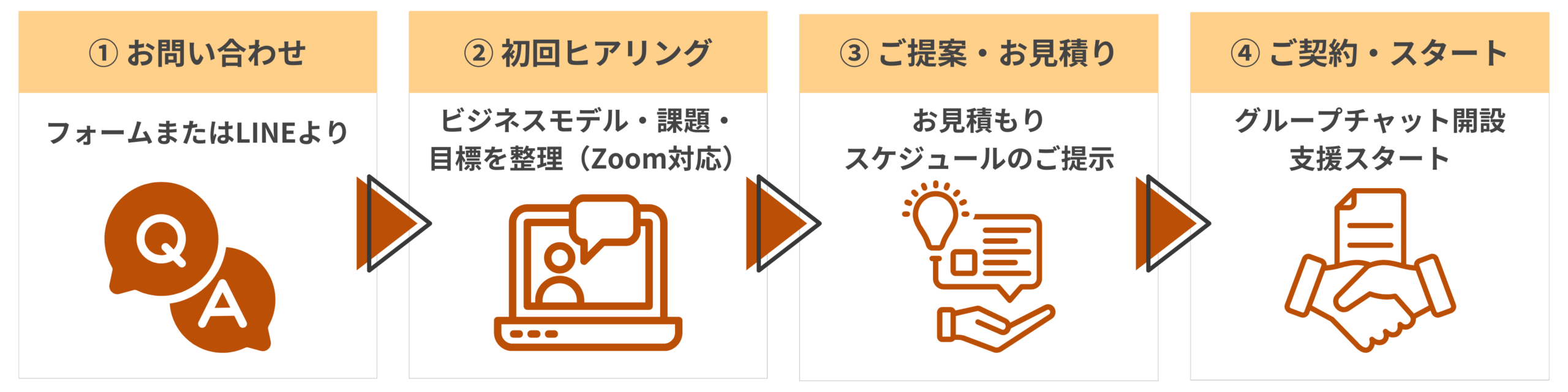 A:コンサルプランでは3カ月間のZoom相談・チャットフォローがついています。